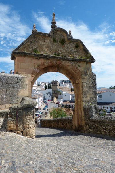 Uitzicht op de Puente Viejo en de Iglesio de Nuestro Padre Jesus met daarvoor de Fuente de los Ocho Canos