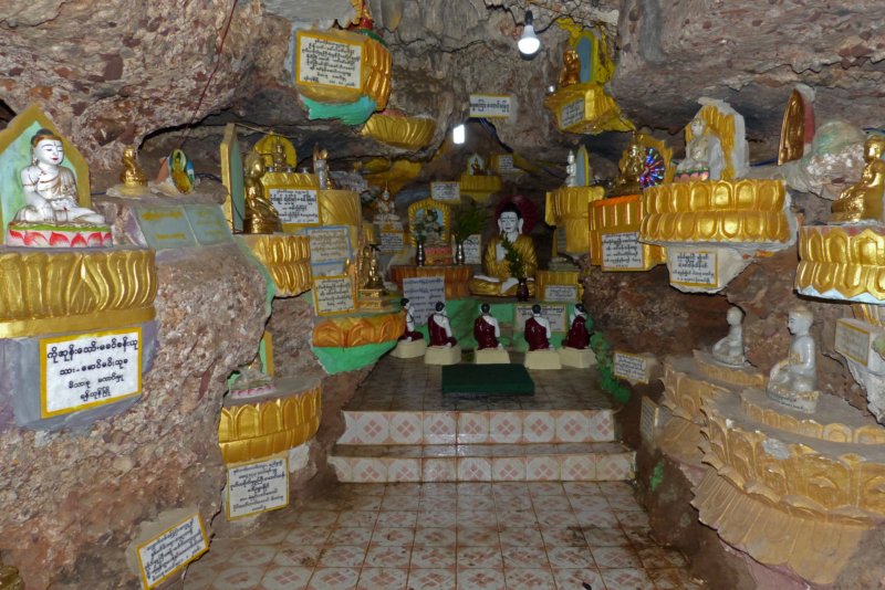 In een grot bij de Shwe Oo Min Paya bevindenzich honderden boeddha's
